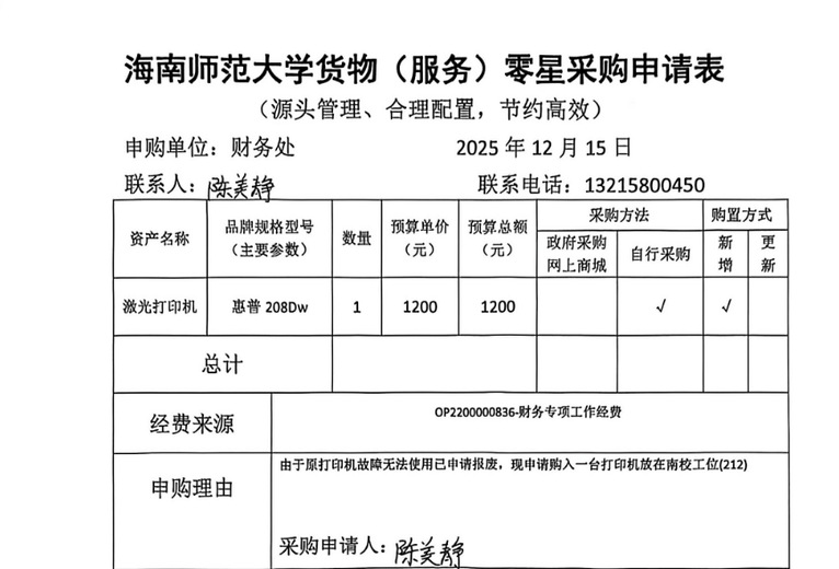 2025年财务处综合科购置激光打印机的公示